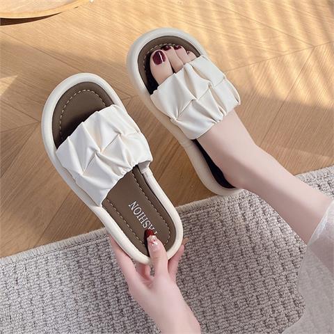 Dép Nữ MWC 8404 - Dép Nữ Quai Ngang Bản To May Nhún Cách Điệu, Dép Đế Bằng Siêu Êm Chân, Trẻ Trung, Thời Trang.