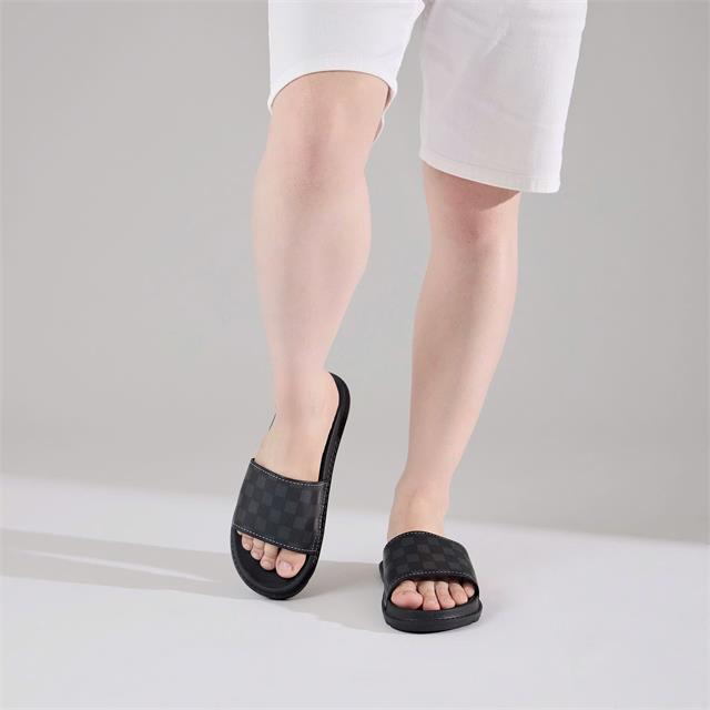 Dép thiết kế đơn giản, với quai ngang bản to cùng họa tiết caro cùng viền chỉ nổi chắc chắn làm từ da mới tổng hợp nên rất êm ái, giúp việc di chuyển khá thoải mái.